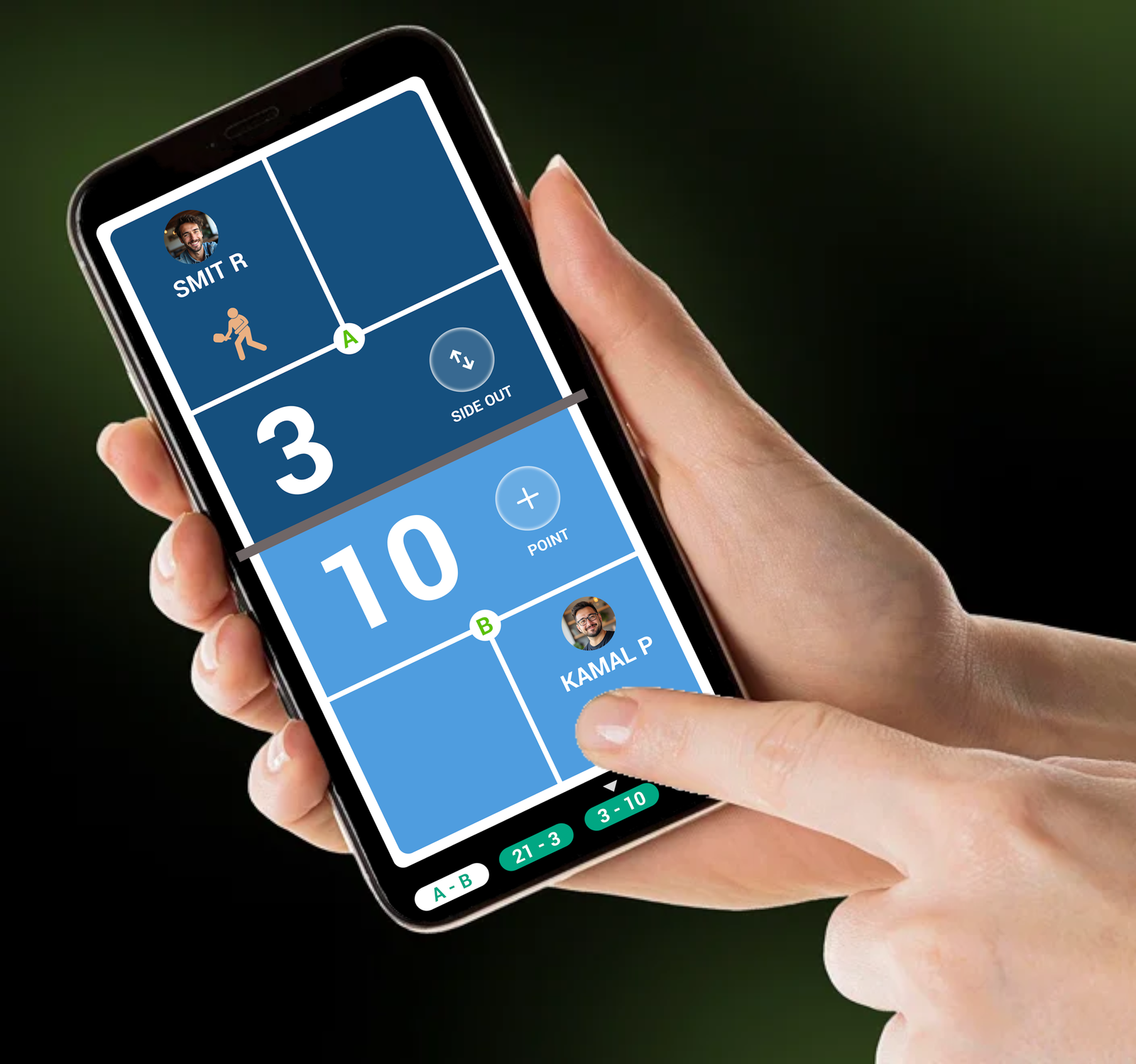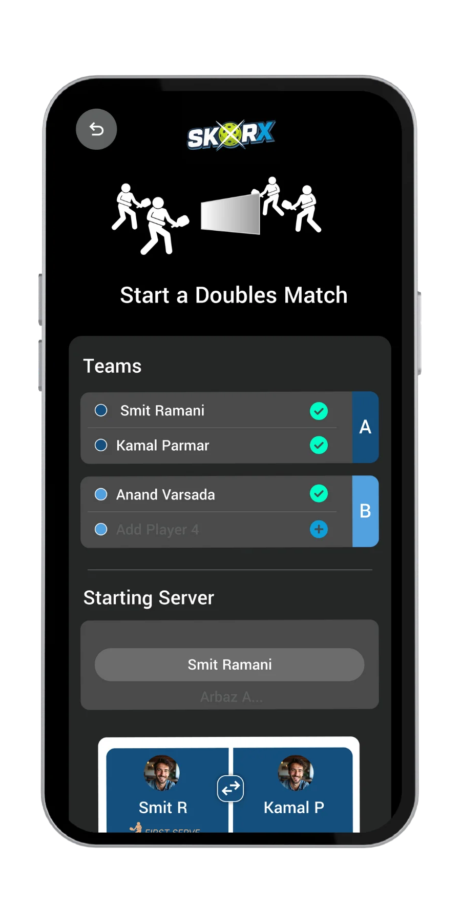 Tap to update the score after every rally. SkorX keeps scoring clear, fast, and accurate.